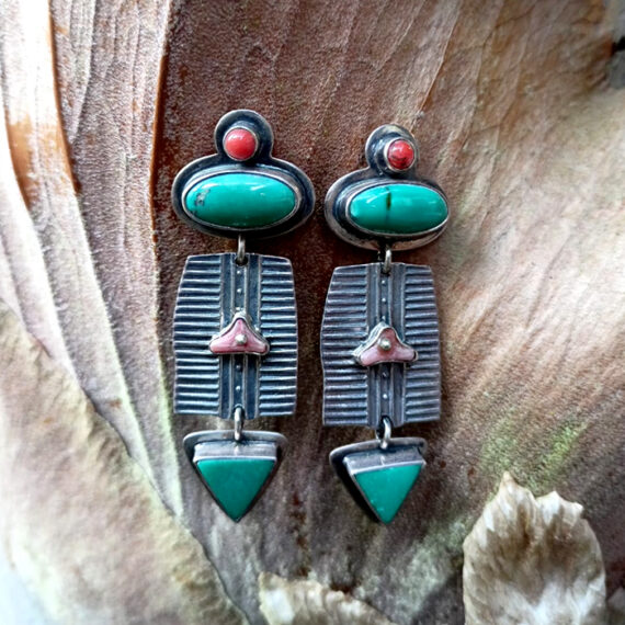 Chinese Turquoise, Red Coral combined with Sterling Silver Castings. Lovely.